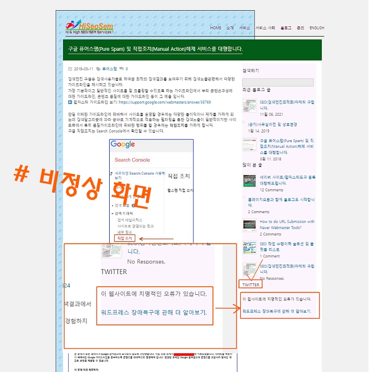 ### 이 웹사이트에 치명적인 오류가 있습니다.