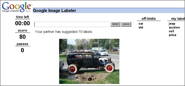 위 이미지는 구글에서 제공하는 Google Image Labeler의 한 장면입니다. 한 번 로그인하면 2분동안 온라인상에 있는 다른 사람과 게임(?)을 할 수 있습니다. 즉, 일단 로그인하면(guest로도 게임가능) 상대방컴과 내컴에 동시에 같은 랜덤이미지가 나오는데 서로가 이 이미지에 맞는 이름을 제한시간내에 입력해갑니다. 물론 상대방이 영어권일 가능성이 크기 때문에 영어로 입력해야합니다. 만일 상대방이 명명한 같은 이름이 나오면 점수가 올라가는데 일반적인 이름보다 … Read more